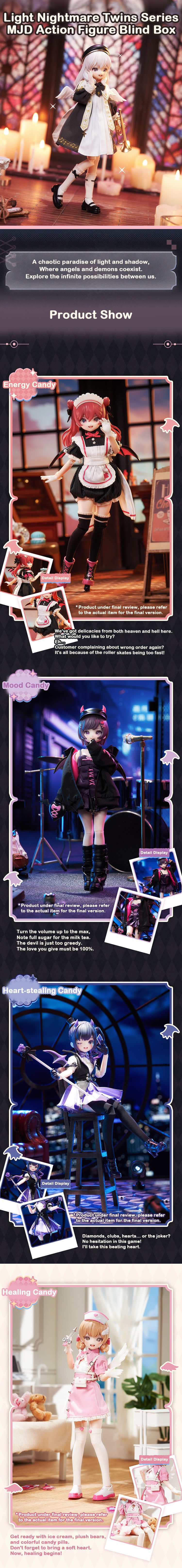 3. The production ratio of general hidden mini-figure (Light Candy) is 1/48, and the production ratio of super hidden mini-figure (Nightmare Candy) is 1/96.