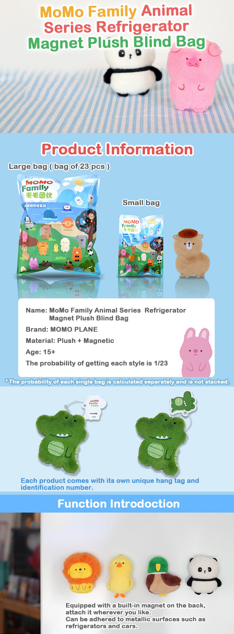 MoMo Family Animal Series Refrigerator Magnet Plush Blind Bag